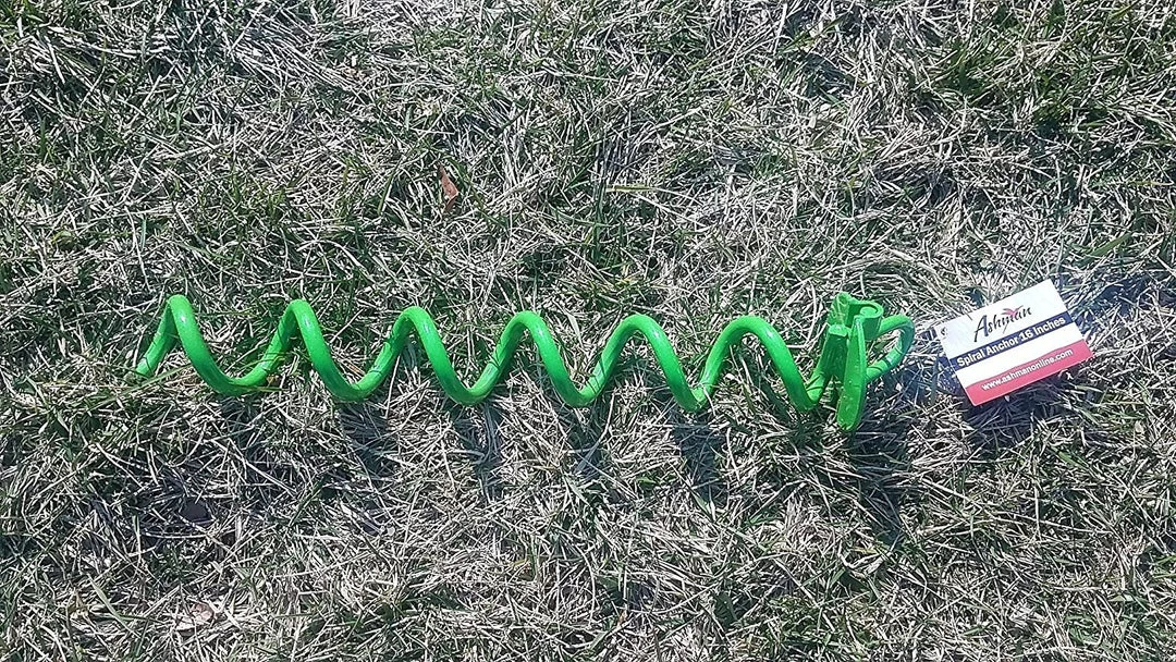 - ✔ STRONG FOLDING RINGS – The Ashman spiral ground anchors have been designed and manufactured to provide extremely tough anchorage and can be easily used for a wide variety of applications. Easy to insert in ground and retrieve using a tool like rod or stick and generally require no specialized tools. 16 Inches tall with Folding Ring for Securing Tents, Canopies, Sheds, Car ports, Swing sets, Firm Soils, Tent Stakes, Small Dogs, Tarp Tie Downs, Landscaping, and Camping.
