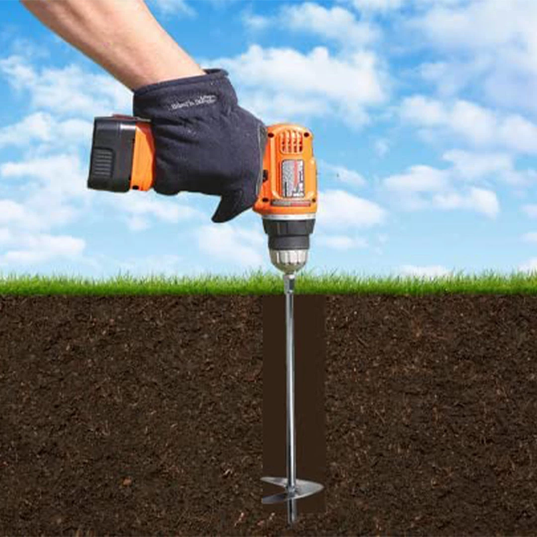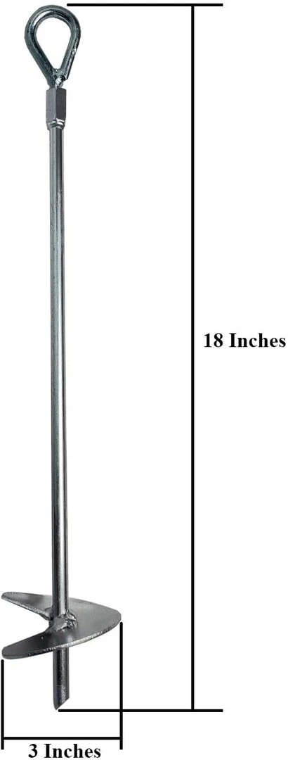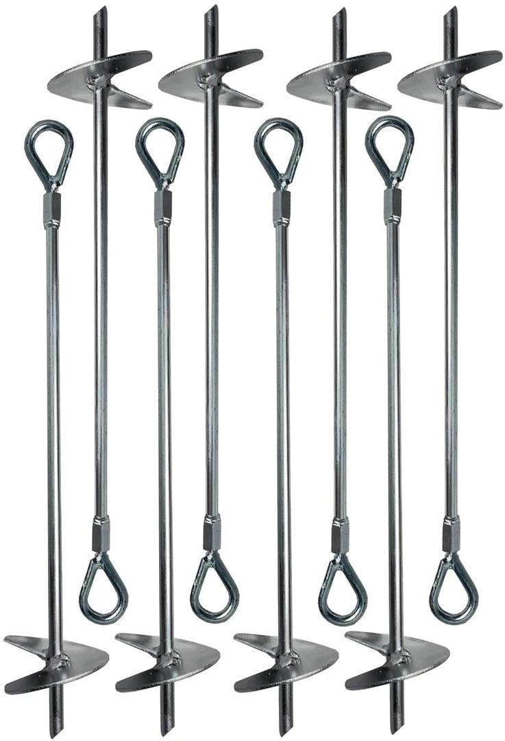 - GREAT VALUE WITH NUMEROUS USES: Package includes 8 Galvanized Ground Anchors which are 1/4 inch in diameter and 18 inches tall. The ground augers can easily be inserted in ground with help of drill machine, to have unlimited number of uses to securely tie down any structure.