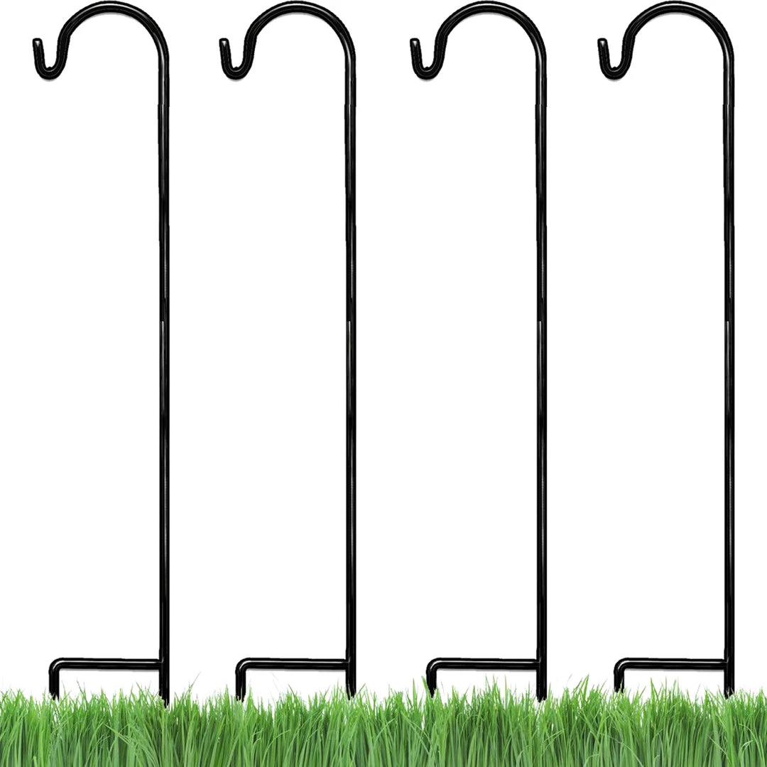 - GREAT VALUE – Set of 4 shepherds hooks and made of high-quality durable steel, 35 inches high, 9 inches wide, and 1/4 inch diameter. This is a single-piece solid metal garden hook which is better quality and great price than most shepherd hooks available the high number of reviews are testament to our satisfied customer base and you can buy with total confidence.
