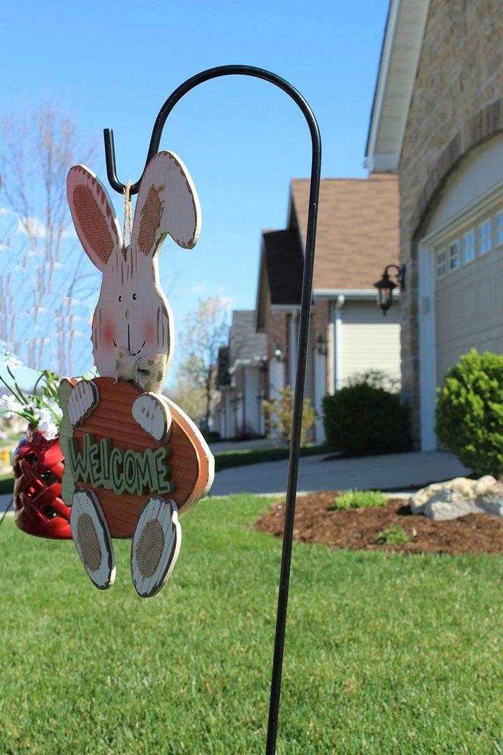 Easy to Install:Â Coming in one piece of solid metal, no assemble needed can be carried around easily. Welded brace near the base to anchor the hook into the soil and keep upright.